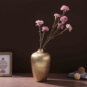 The Sirevest Gilded Texture Vase brings refined sophistication to your living space. With its handcrafted metallic finish and unique textured surface, this statement piece effortlessly enhances console tables, shelves, or dining areas. The golden sheen adds a touch of luxury, while the artisanal design ensures individuality in every piece. Display it on its own or with dried stems to elevate modern, rustic, or classic interiors.