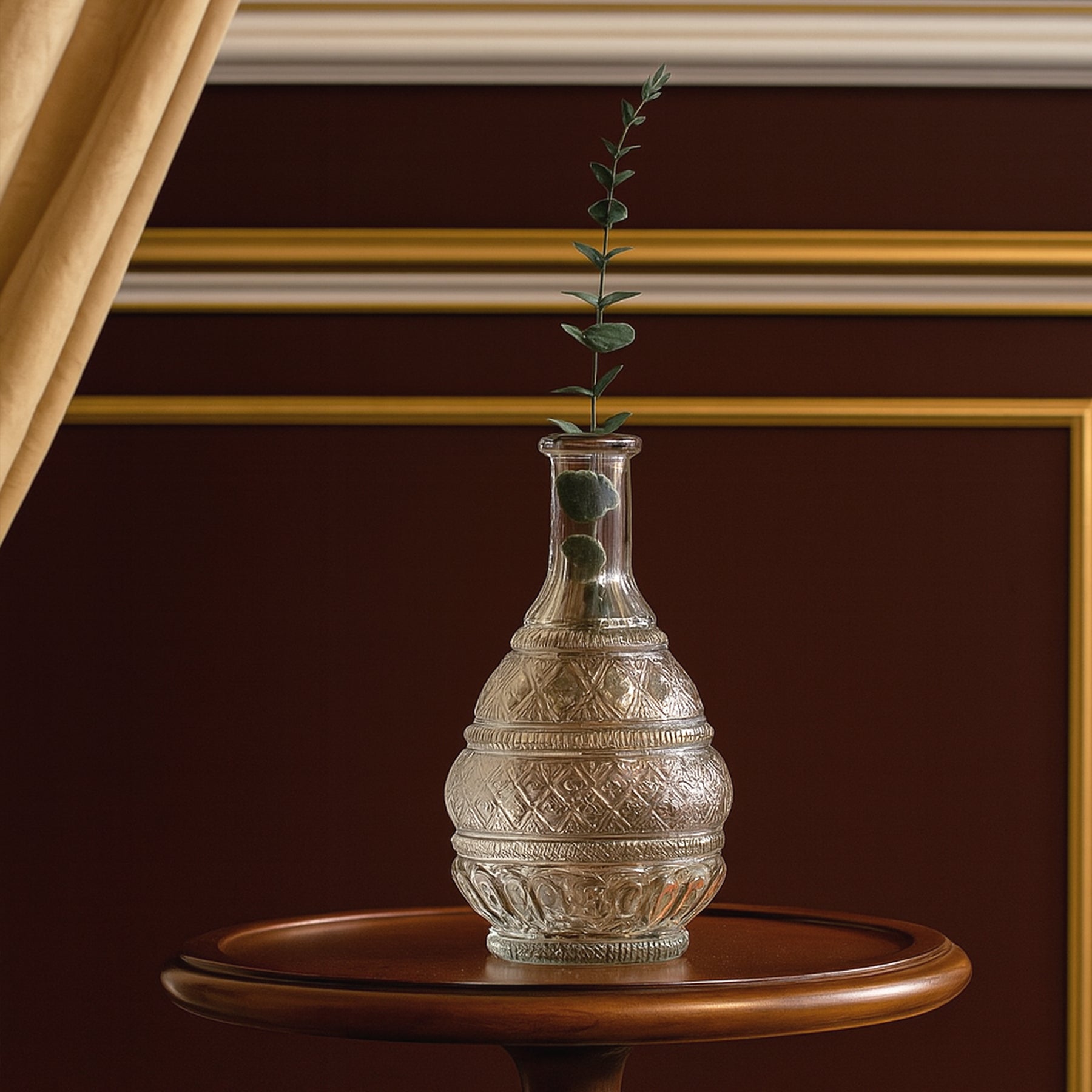 Accessorise your living space with this Decanter Embossed Design Vase. This glass vase comes with an elegant embossed design and is sure to enliven your room. No matter where you place it, this unique vase will enhance the look of your space.