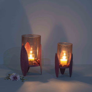 Heather-Toned Iron Candle Stand With Leaf Motif (Set Of 2)