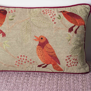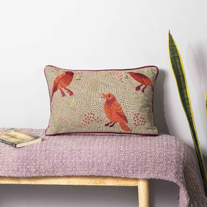 Celebrate the beauty of nature with our Nature’s Harmony Pillow Cover. Featuring a serene beige-brown hue, this exquisite piece is decorated with vibrant red birds and a delicate leaf-and-stem design. Made from soft, durable fabric, it offers both style and comfort. Perfect for adding a pop of colour to your living room or bedroom, this pillow cover invites a warm and inviting atmosphere into your home.