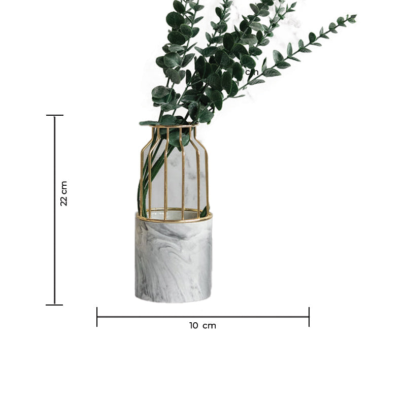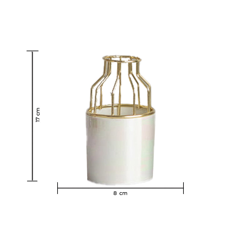 Home Cylindrical Vase With Gold Metal Cage