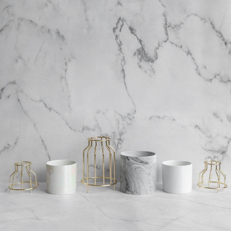 Cylindrical Vase With Gold Metal Cage Vases June Trading Marble