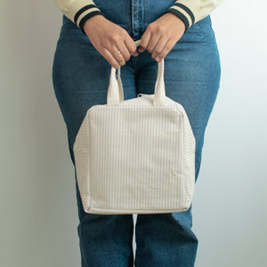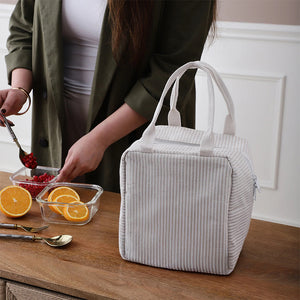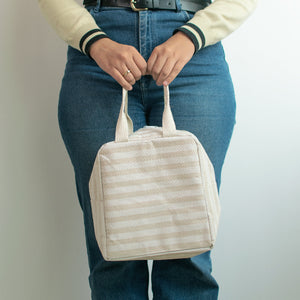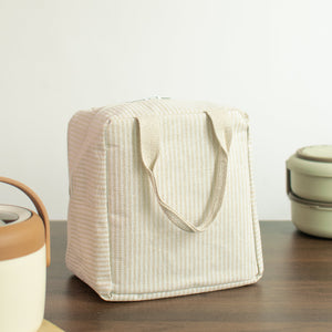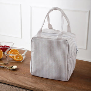 Tote-ally ready for lunch! This striped insulated tote keeps your meals fresh and your style on point. Perfect for work, school, or weekend adventures, it features reliable insulation to maintain food temperatures and sturdy handles for easy carrying. The cheerful stripe pattern adds a pop of personality to your daily routine. Durable construction means it'll be your go-to lunch companion for years to come.