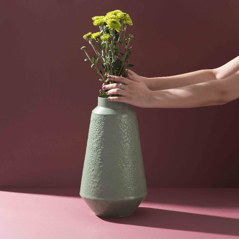 Bring timeless elegance into your home with the Sirevest Floral Embrace Iron Vase. Featuring a beautifully contoured silhouette and embossed floral detailing, this handcrafted metal vase blends strength with soft design. Its muted metallic finish complements modern, rustic, or classic interiors. Use it as a standalone statement piece or pair it with dried or faux botanicals to create a captivating tabletop or shelf display.