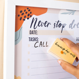 Use these planners everyday to get yourself super organized. They can be used to write your everyday routine, to-do list, important notes, reminders, messages for the whole week so that you can clear your head and focus only on the execution bit. They come with a duster and a marker and are easily re-writable.