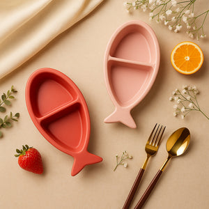 Add a touch of whimsy to your serveware collection with these Sectioned Fish Plates. These sectioned serving dishes can be used to serve snacks, starters, chips, along with sauce or dips. The ceramic sectioned snack plate in the shape of a crescent and poppy color is sure to offer a cute look to your table. It is perfect for serving food at a party and also makes a great gift for a birthday or a housewarming party.