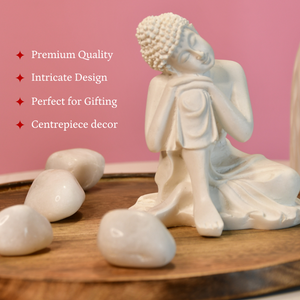 Find tranquility in your space with the Sowpeace Serene Thoughts Buddha figurine, a symbol of peace, mindfulness, and wisdom. Crafted from high-quality resin in a soothing white finish, this elegant sculpture features Buddha in a thoughtful sitting pose, radiating calmness and serenity.