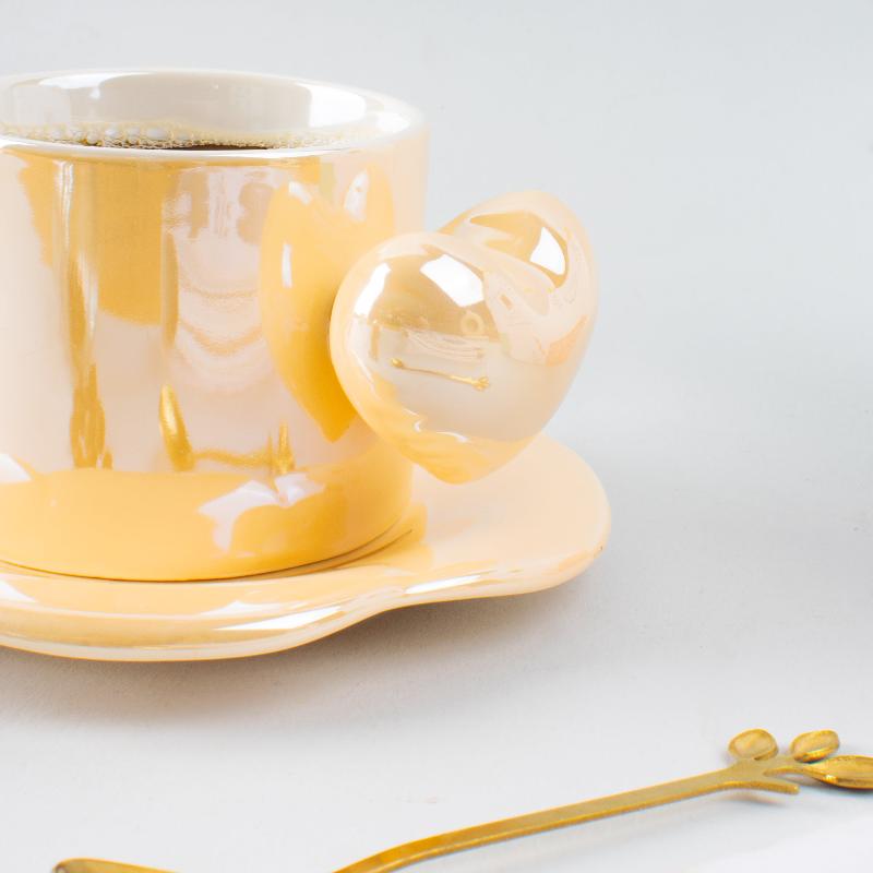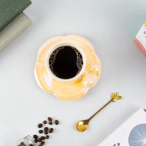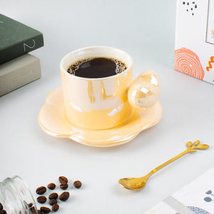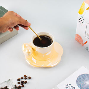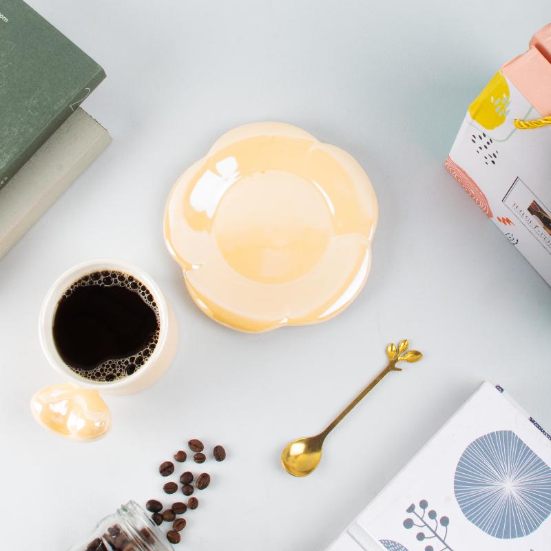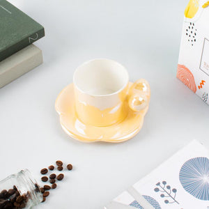 Get your caffeine fix with the Sunrise Petal Mug! Made from durable ceramic, this mug comes with a matching plate for a cozy coffee or tea experience. Perfect for enjoying your favorite warm drink in style. (Petal-shaped plate included!)