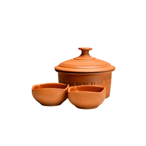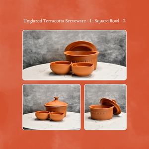 A versatile terracotta serveware set including two multifunctional bowls. Ideal for snacks, chutneys, dips, sweets, and festive serving with an earthy aesthetic.