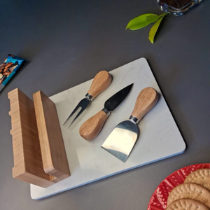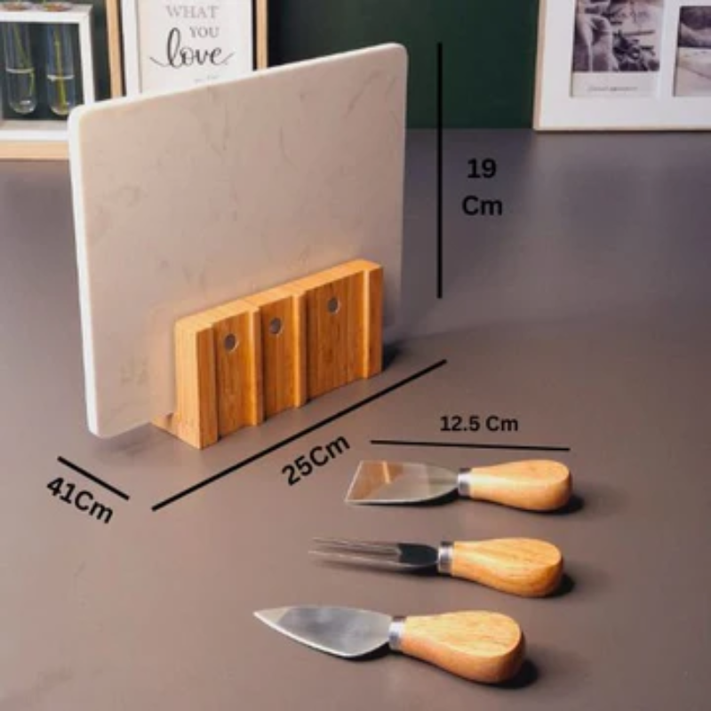 Wooden Cheese Platter Set With Marble Board And Cheese Cutlery Style 3