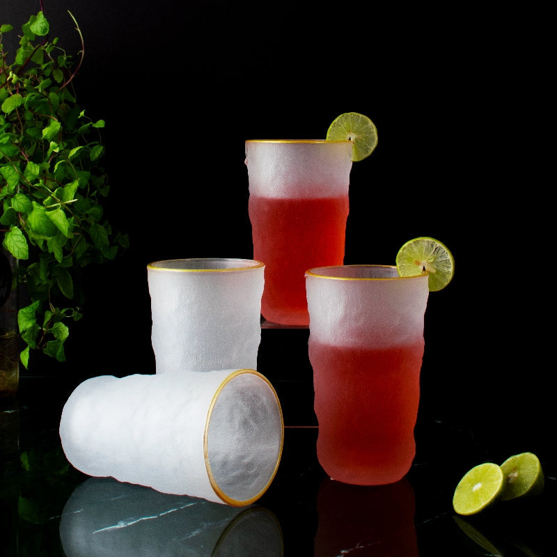Delight your guests with this Artisanal Haven Frosted Glass set of 4 - exquisitely crafted with a unique, artistic design. Perfect for storing juices or cocktails, this luxury barware lets you sip, toast, and relax in style. With its interesting, elegant and quality design, you’ll enjoy an unforgettable experience every time you use it. Let the mesmerizing sound of jazz and the interesting design of your glasses create the perfect atmosphere for you and your guests! It's the perfect way to create an enchanting ambiance in your home that everyone will admire. Make your get-togethers even more special with Artisanal Haven Frosted Glass.
