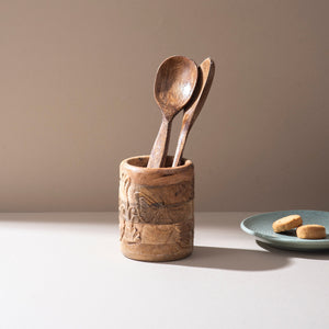 Elevate your kitchen counter with the Artisan Leaf-Engraved Spoon Stand, crafted from quality wood and detailed with a delicate leaf engraving. This stand not only organizes your cooking tools but also adds a nature-inspired charm to your space. A perfect blend of beauty and function for everyday kitchens.