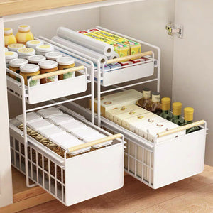 This quirky cart organiser is perfect for keeping your shelves and cabinets neat and tidy. With dual storage functionality, it's ideal for storing a variety of items. Say goodbye to clutter and hello to organized chaos (the good kind).