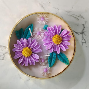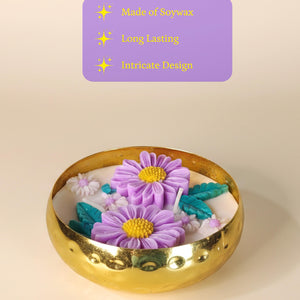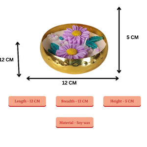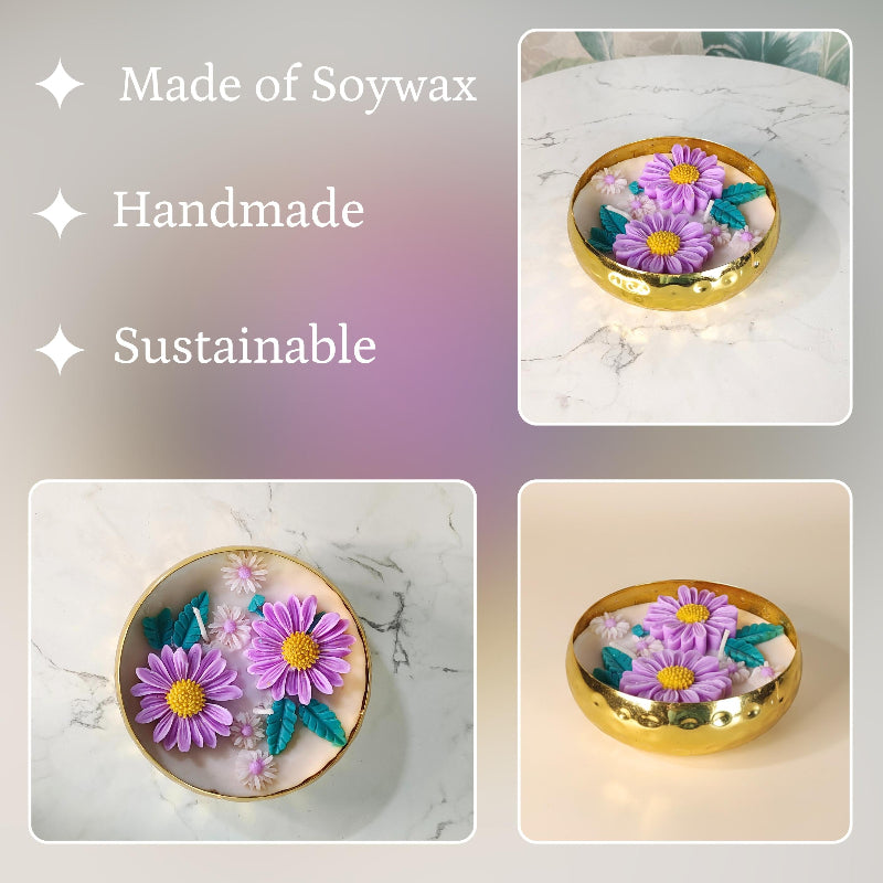 Large Soywax Candle In Metal Pot Two Flower With Petals Yellow Centre Flower