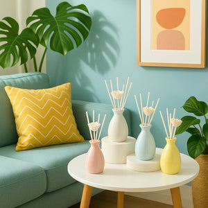 Savour The Scent Reed Diffuser is a great way to make your home smell refreshing throughout the day. Place it on your side table, center table, night stand or dining table. These diffusers come in an elegant Victorian vase along with reeds. The reeds absorb the oil and spread the fragrance in the room via capillary action. This is an excellent housewarming gift or an anniversary gift.
