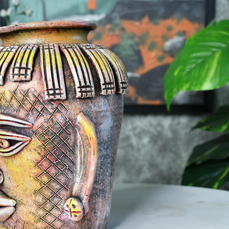 Unique Design: Features a tribal effigy design with blooming elements, blending traditional art with natural motifs.