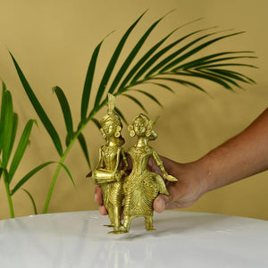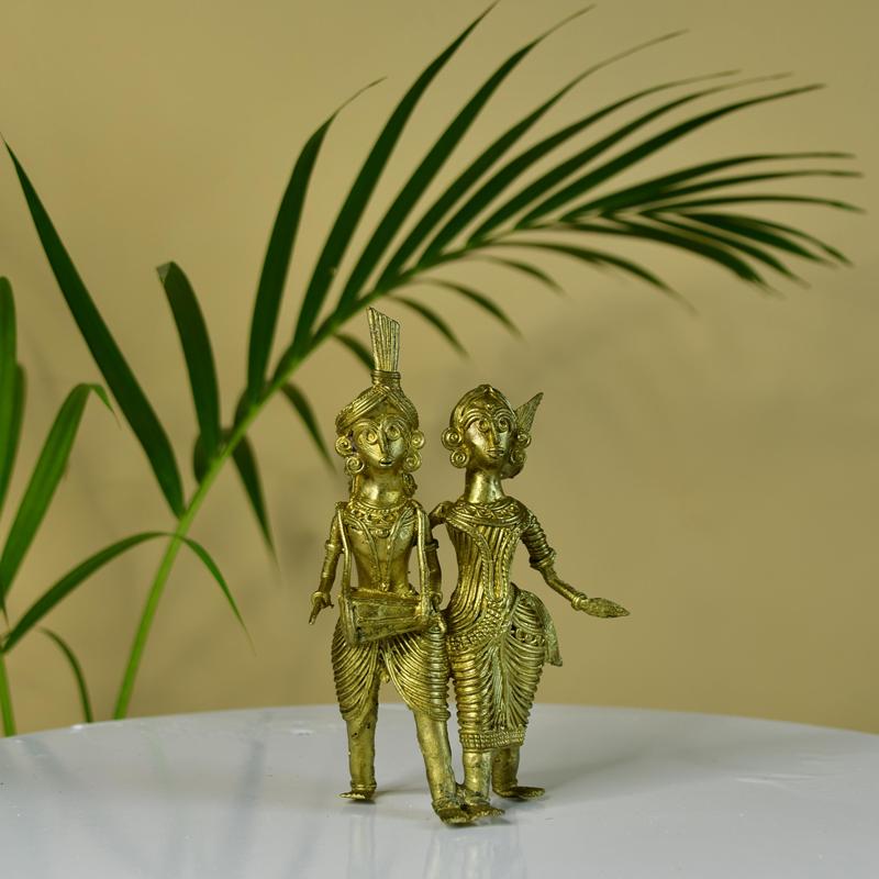Artisanal Brass Dhokra Sculpture: Tribal Couple With Dhol