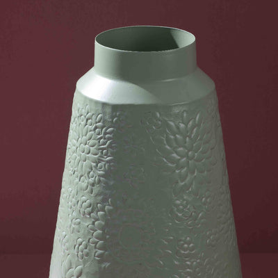 Bring timeless elegance into your home with the Sirevest Floral Embrace Iron Vase. Featuring a beautifully contoured silhouette and embossed floral detailing, this handcrafted metal vase blends strength with soft design. Its muted metallic finish complements modern, rustic, or classic interiors. Use it as a standalone statement piece or pair it with dried or faux botanicals to create a captivating tabletop or shelf display.