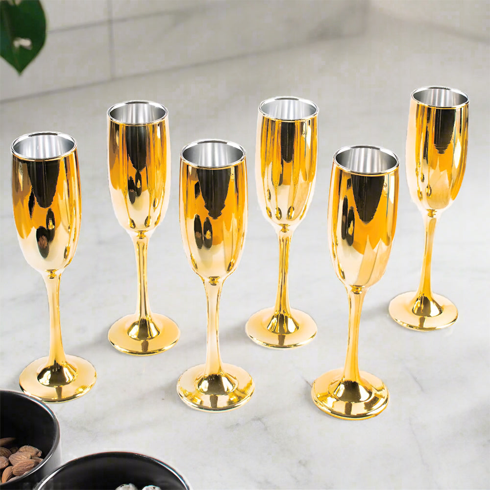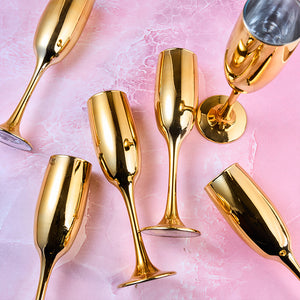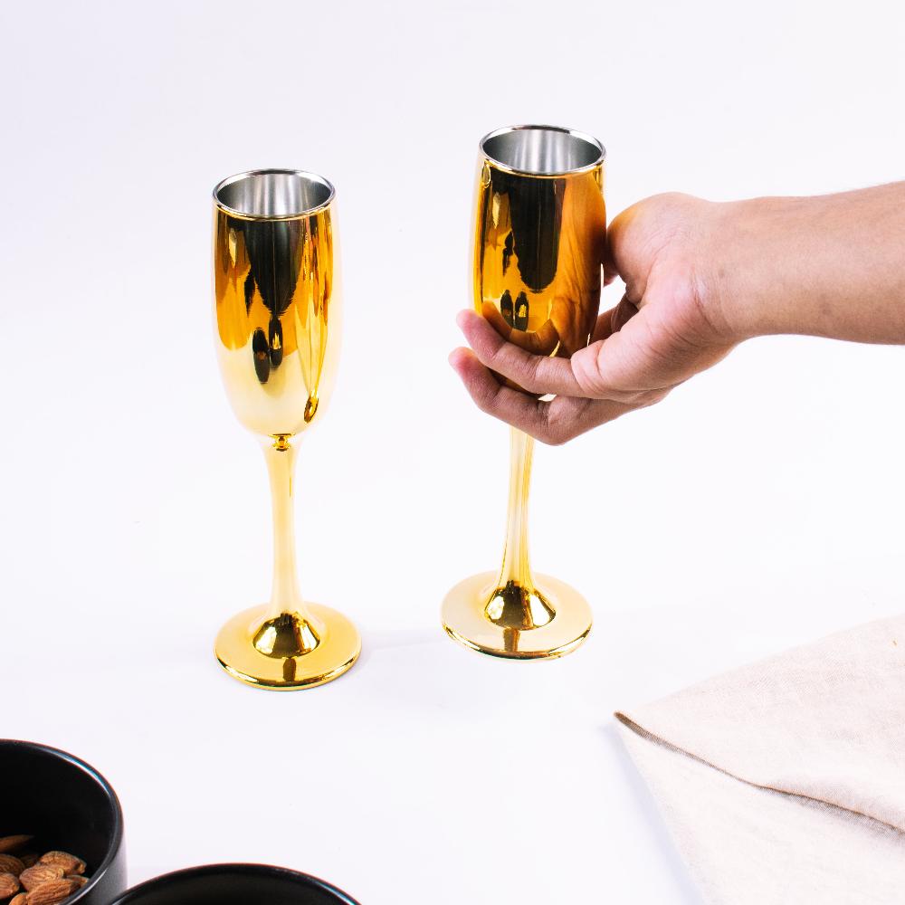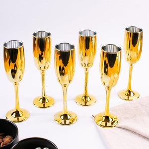 Indulge in the luxurious and exclusive experience of sipping champagne from our Golden Luxe Flute. Crafted with stainless steel and a stunning mirror finish, this glass exudes elegance. Available in sets of 2, 4, or 6, it's the perfect addition to elevate any occasion.