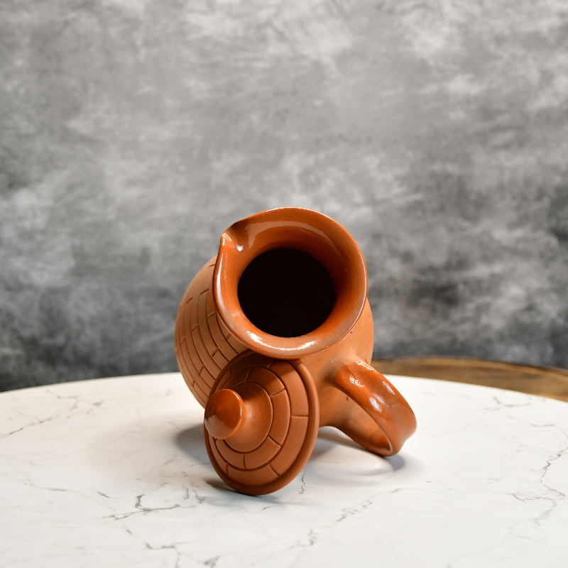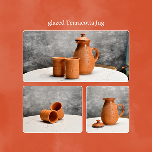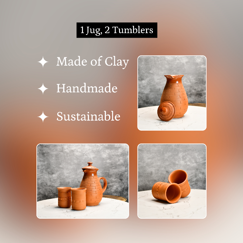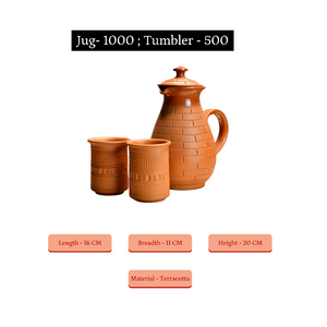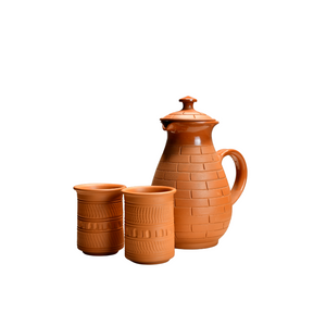 Brick-pattern jug combined with a plain tumbler. Stylish, functional, and perfect for healthy hydration using natural terracotta.