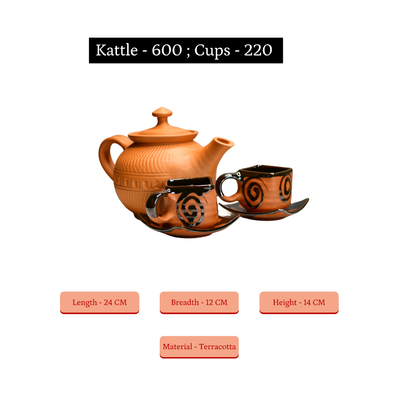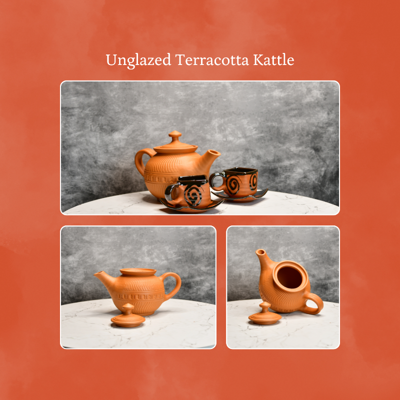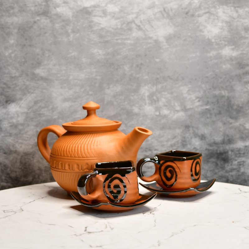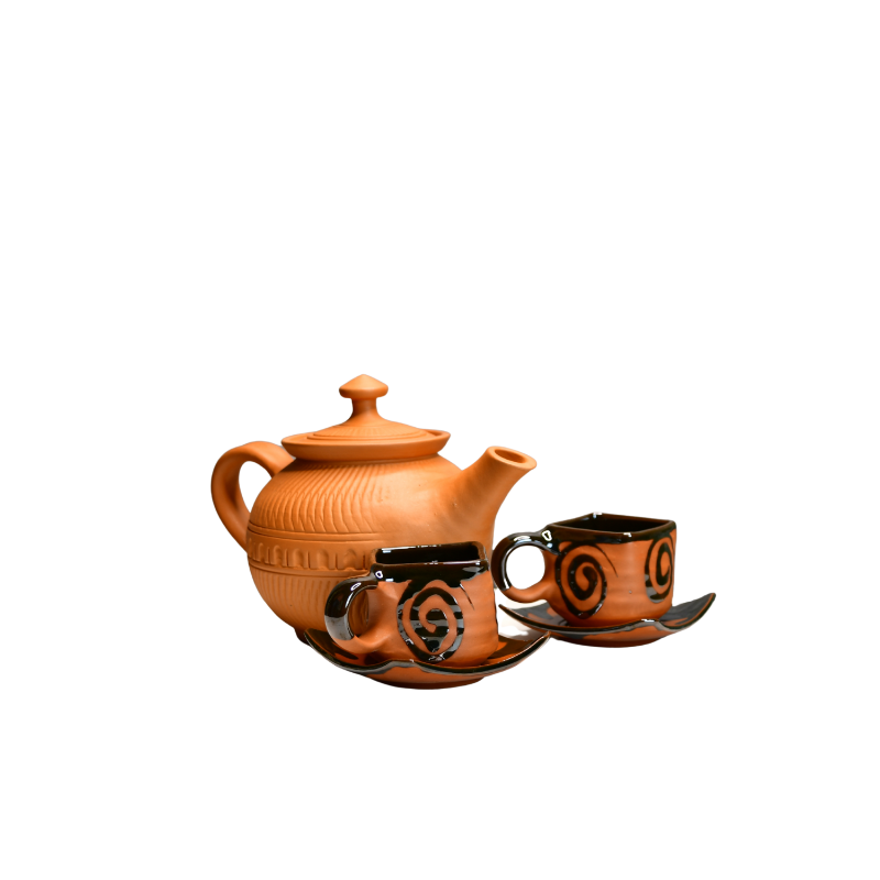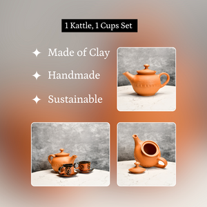 Unglazed terracotta kettle with matching cups for the purest clay-brewed tea experience. Offers natural flavor enhancement with toxin‑free clay.