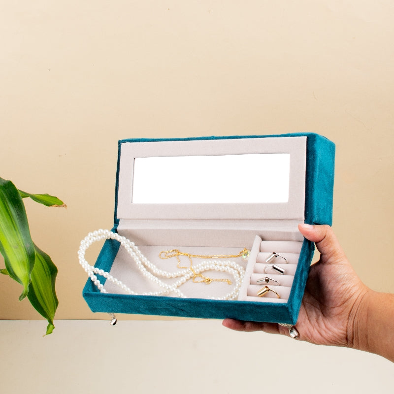 Carry all your delightful jewellery pieces with elegance and convenience. Keep your treasures shimmering and secure with this fashionista-inspired organiser. Display your necklaces, ankle chains, earrings, and rings together in one stylish and practical case. Sparkle with confidence and be proud of your fashionable accessory collection! Experience the perfect blend of style and convenience this Bespoke Treasures Jewellery Organiser. Whether you're at home or traveling, know that your beautiful jewellery is safe and protected in its cushioned interior. Keep all your favourite pieces in one chic case and get ready to be the envy of all!