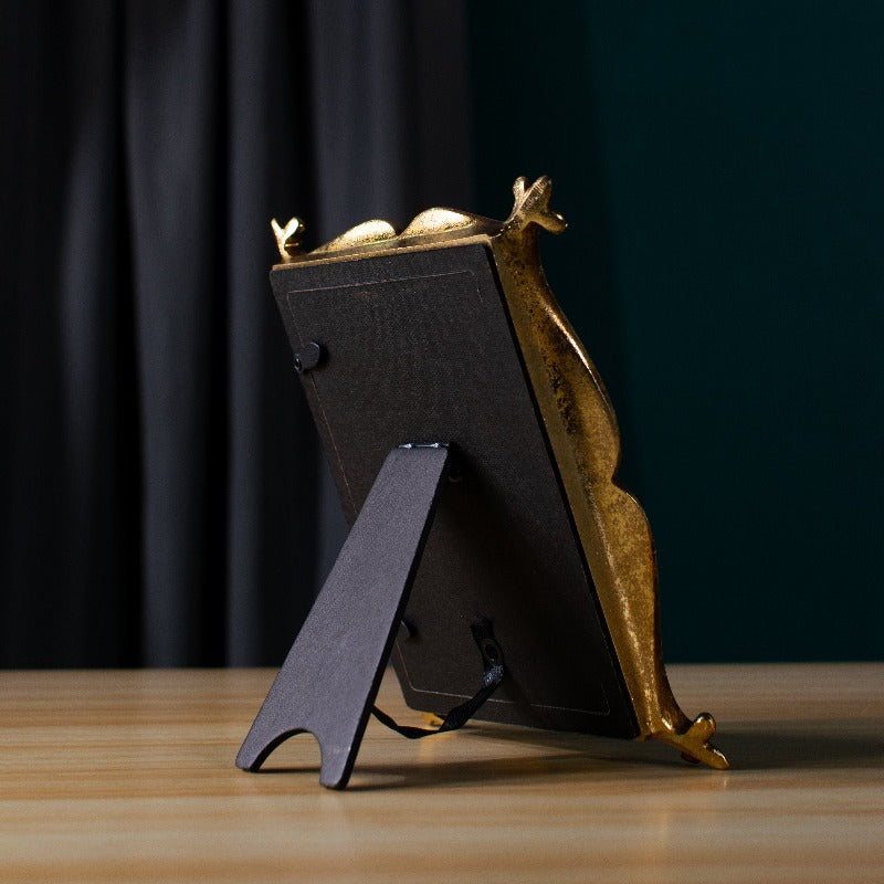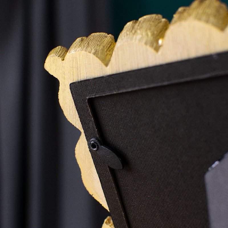 Display your most cherished memories in the Elayne Sleek Gold Photo Frame. Our classy and stylish photo frame will complement the beautiful photographs. This photo frame is what you need to spice up your night stand, side table, study or work table. The intricate craftsmanship along the frame brings an elegant look to the space. This is in portrait size, thus any photo taken vertically will fit fine in this golden picture frame.