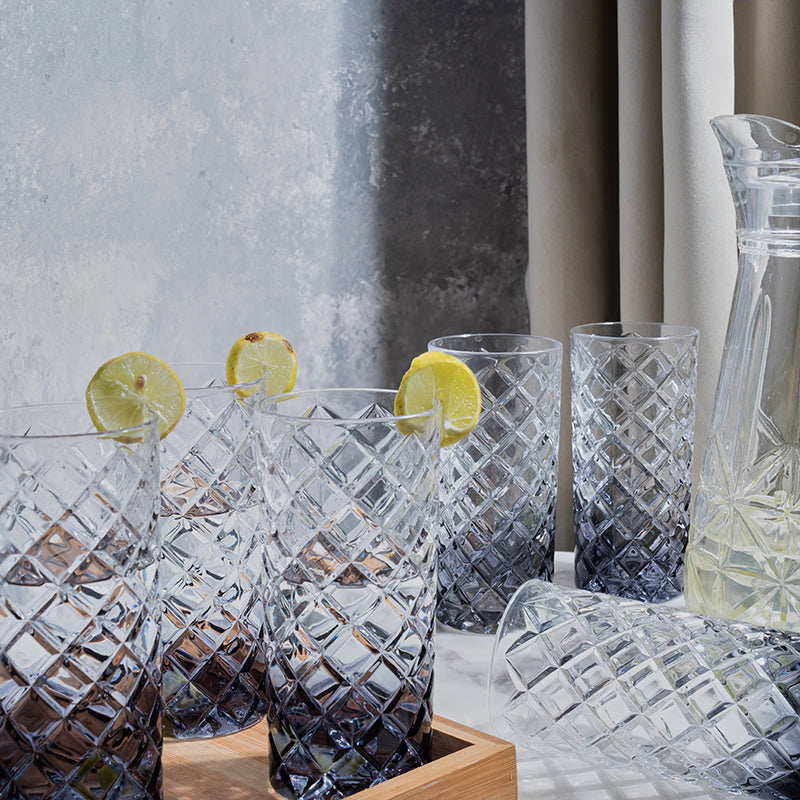 Upgrade your glassware with the Midnight Prism Crystal Tall Glasses! Not only are these glasses visually striking with their prism design, but they also add a fun and playful touch to any drink. Perfect for sets of 2, 4, or 6, these glasses will elevate any dinner party or gathering. Cheers!
