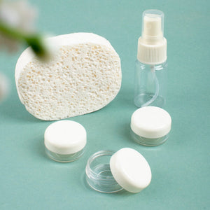 Jetset in style with this Mini Travel Beauty Set. Includes a soft sponge for flawless blending and handy bottles for your favorite products. Keep your beauty routine on point wherever and whenever (beauty emergencies happen, y'know). Perfect for wanderlust beauties on the go!