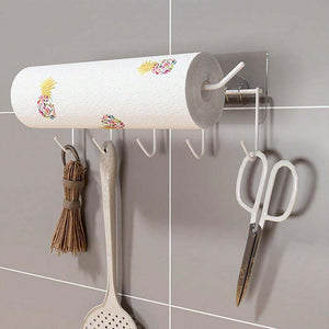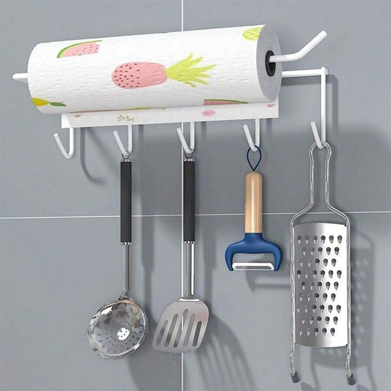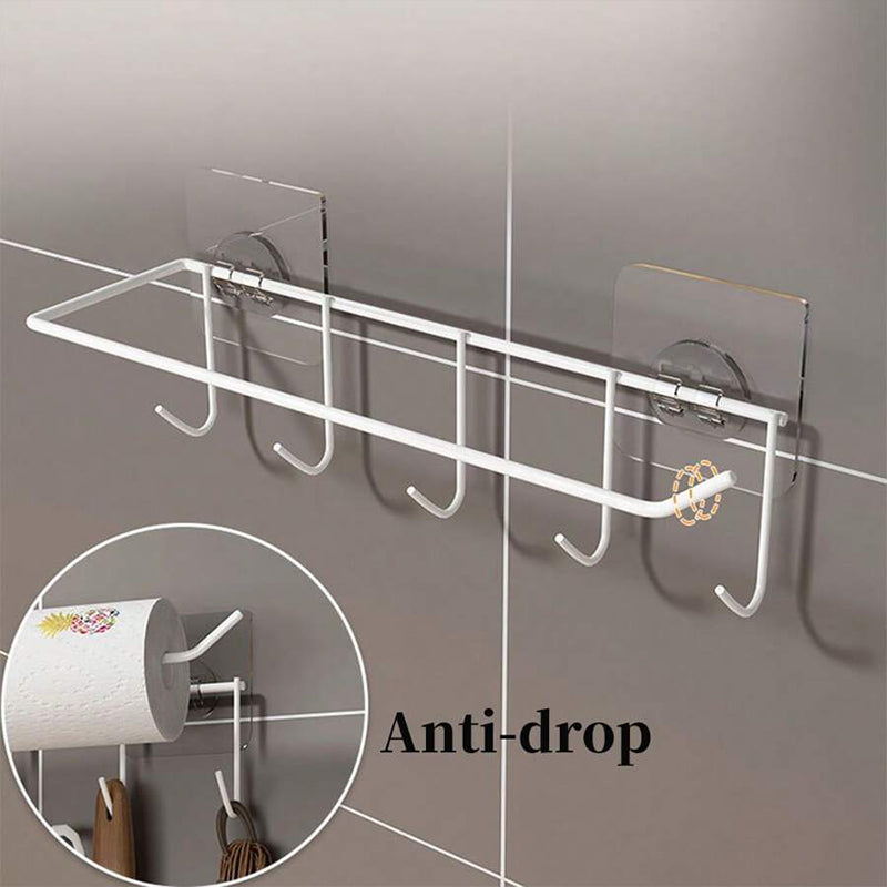 Get organized with this Multi-Purpose Hanging Wall Rack! Made of sturdy metal with transparent adhesive wall hooks, it's perfect for storing and displaying your belongings in any room. Streamline your space and add a touch of modern style. (No more clutter, yay!)