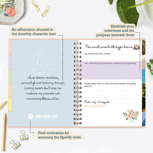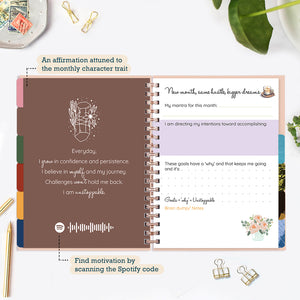 Our Undated Planner is your ultimate canvas for unlocking your inner main character. These planners are your trusty buddies, and each page is a blank slate waiting for your journey and goals. No more waiting around for that "perfect" date – the spotlight is always yours to take. With themes and inspiration that groove with your ever-evolving story, it's time to grab that pen and start scripting your narrative, your way, every single day. Let's make your story awesome!