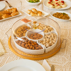 Material: Ceramic Platter, Wodden Base & Acrylic Lid