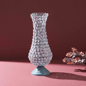 Infuse your space with serene charm using the Aurora Glow Candle Stand in Blizzard Blue. Its sleek design and frosted metallic finish bring an air of tranquility and sophistication. Perfect for holding taper or pillar candles, this handcrafted piece serves as a stunning accent on dining tables, mantles, or entryways. Style meets functionality in this elegant décor essential.