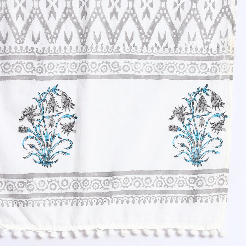 This stole exudes timeless elegance with its intricate patterns and delicate floral motifs. The subtle interplay of grey geometric designs and vibrant blue accents offers a perfect blend of tradition and modern sophistication. Crafted with precision, it's ideal for elevating any ensemble, making it a versatile accessory for both casual and formal occasions.