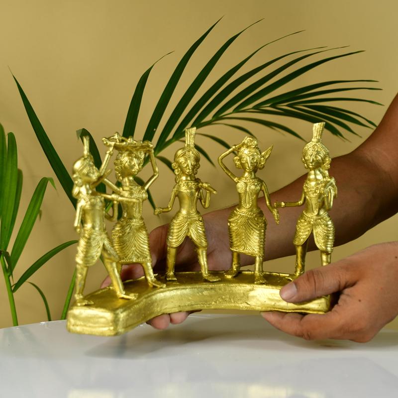 Handcrafted Decoration: Each piece in the set is meticulously handcrafted by Dhokra artisans, ensuring that the set is a true representation of traditional Indian craftsmanship.