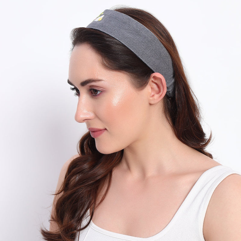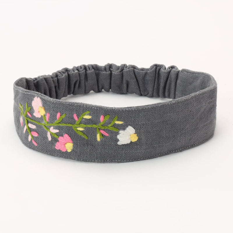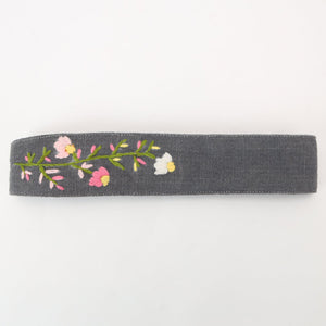 Elevate your hair accessories collection with this hand-embroidered floral headband in a sophisticated charcoal grey shade. Featuring delicate pink and white blossoms with green vine detailing, this headband exudes a blend of elegance and charm. Made with high-quality fabric, it offers a comfortable and secure fit, making it perfect for everyday wear, casual outings, or special occasions. Whether paired with a chic outfit or a cozy ensemble, this floral beauty adds a touch of timeless grace to your look.