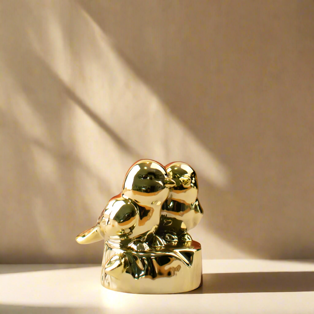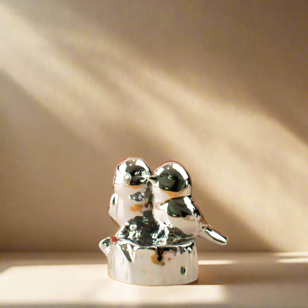 Bring an air of whimsy and charm into your home with our Radiant Gold & Silver Birds Figurine. This unique artifact is perfect for adding a touch of nature to your home decor. The playful pair of birds will surely bring a smile to your face. (No need to tweet about it!)