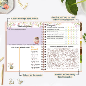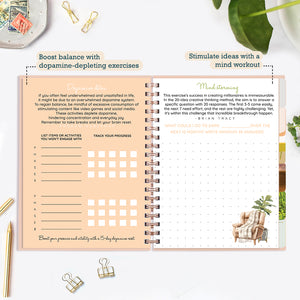 Our Undated Planner is your ultimate canvas for unlocking your inner main character. These planners are your trusty buddies, and each page is a blank slate waiting for your journey and goals. No more waiting around for that "perfect" date – the spotlight is always yours to take. With themes and inspiration that groove with your ever-evolving story, it's time to grab that pen and start scripting your narrative, your way, every single day. Let's make your story awesome!