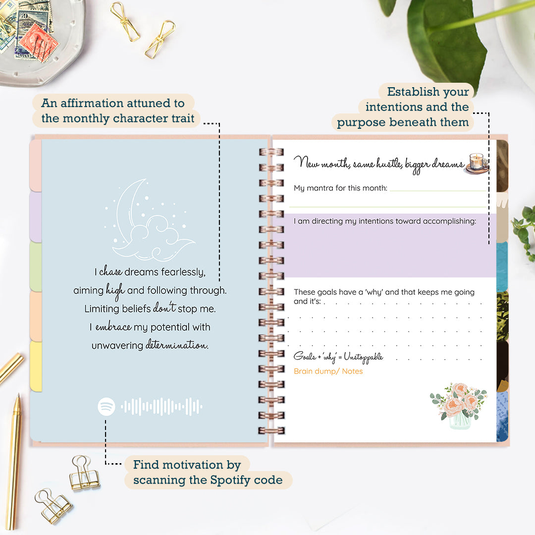 Our Undated Planner collection is your ultimate canvas for unlocking your inner main character. These planners are your trusty buddies, and each page is a blank slate waiting for your journey and goals. No more waiting around for that "perfect" date – the spotlight is always yours to take. With themes and inspiration that groove with your ever-evolving story, it's time to grab that pen and start scripting your narrative, your way, every single day. Let's make your story awesome!